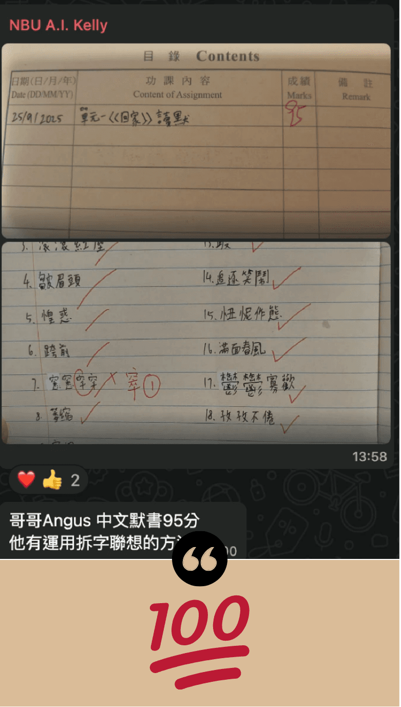 加入挑戰後 3星期內默書滿分,仲自信到主動教同學!