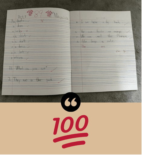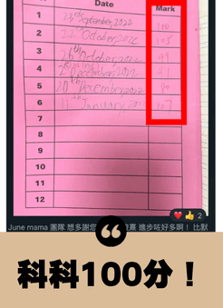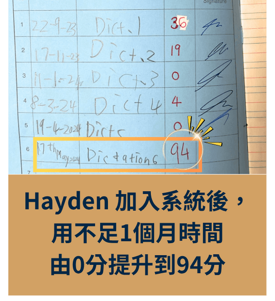 加入挑戰後 3星期內默書滿分,