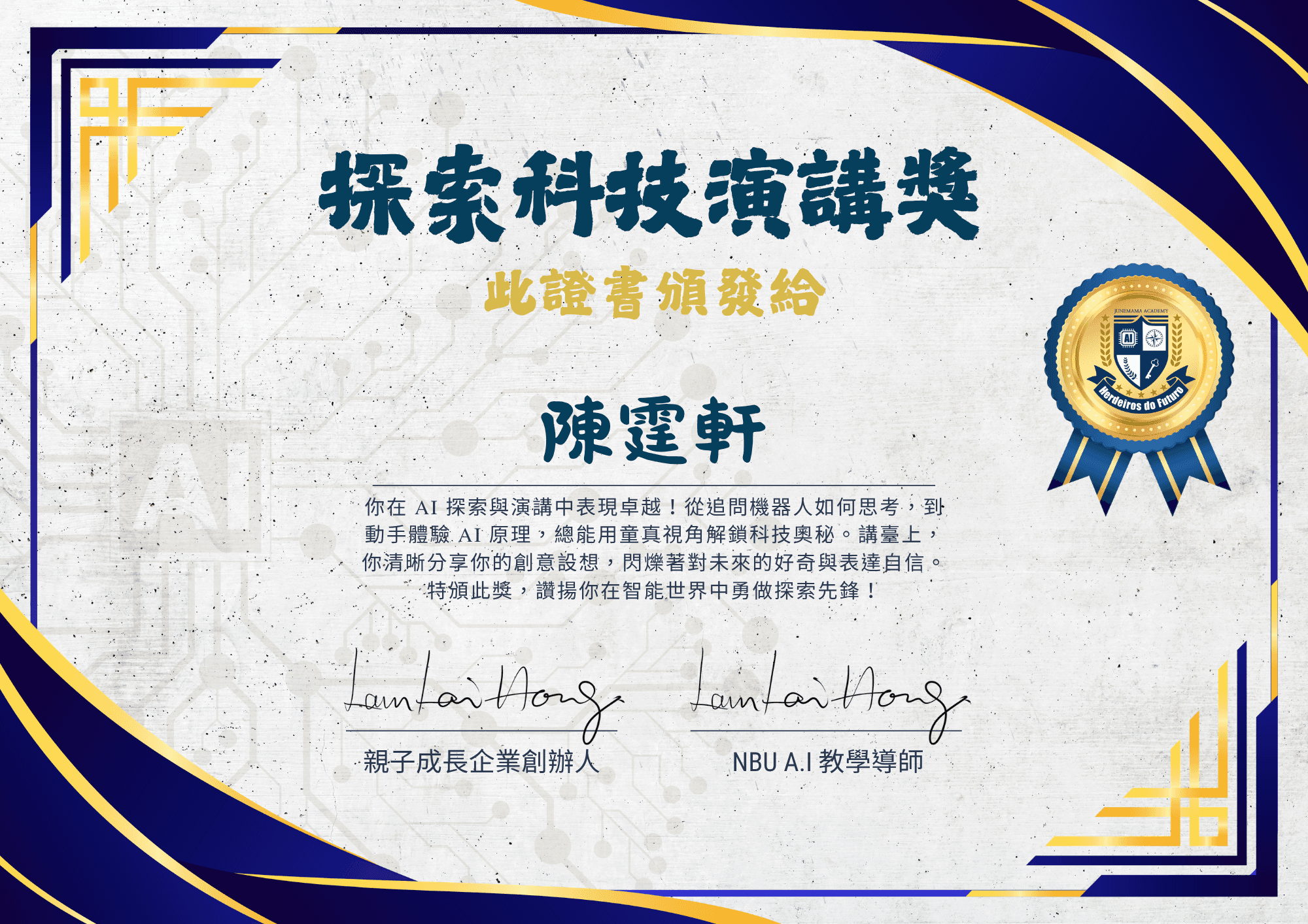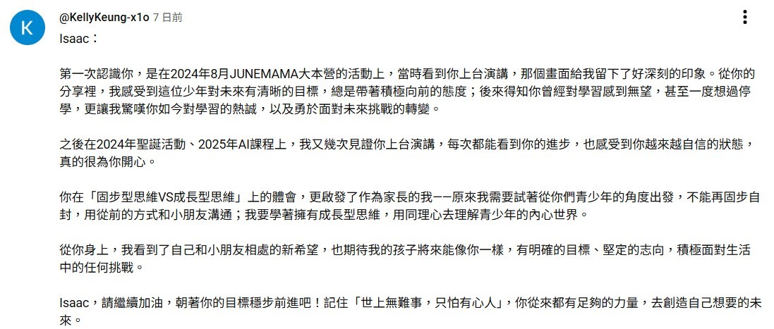 我將AI視為新世代的核心工具,學習它不為跟風,而是為了解決複雜的教育難題,將概念轉化為可執行的創新方案。