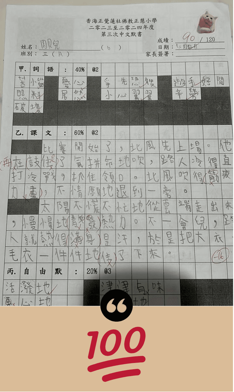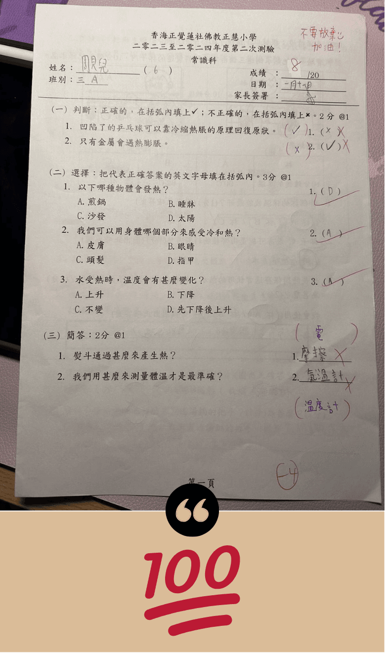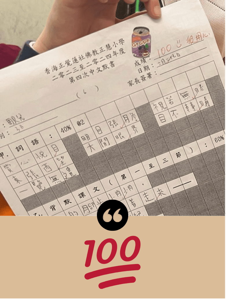 全港唯一一個大量100分大腦潛能見證