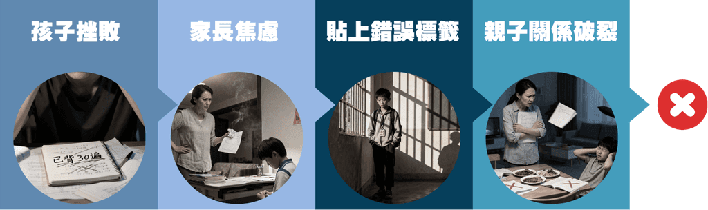 親子關係破裂:學習呢件本來可以好有趣嘅事,變成咗家庭戰爭嘅導火線。大家一諗起溫書,就只有痛苦嘅回憶。