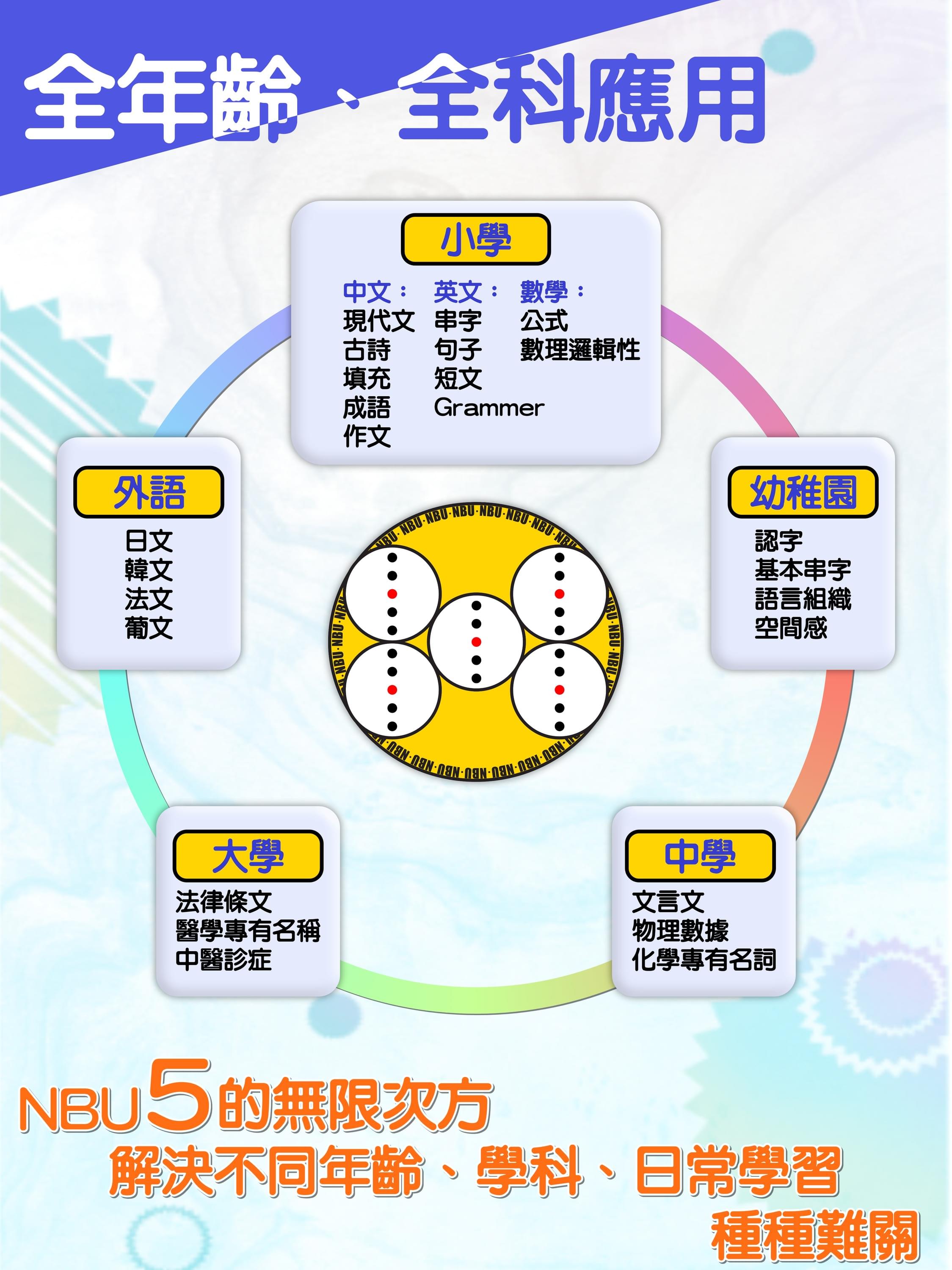 我們的教學團隊擁有多年教學經驗,NBU 5 的無限次方,解決不同年齡、學科、日常種種難關。